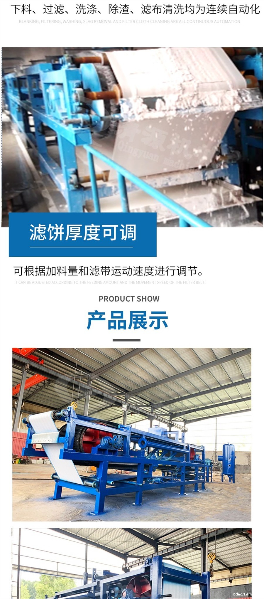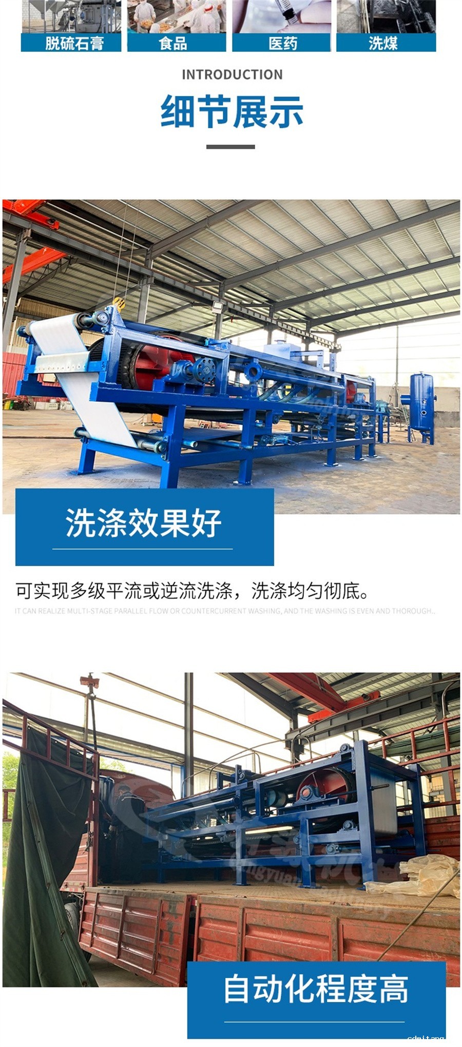 3: 滤工艺方便; 滤饼厚度. 洗水量. 逆流洗涤级数. 真 空度. 滤布速度任意调整,以达到更佳过滤效果。 4 : 洗涤效果好; 可实现多级平流或逆流洗涤,洗涤均匀彻底,母液和洗涤液根据 工艺需要可分开收集和再利用。