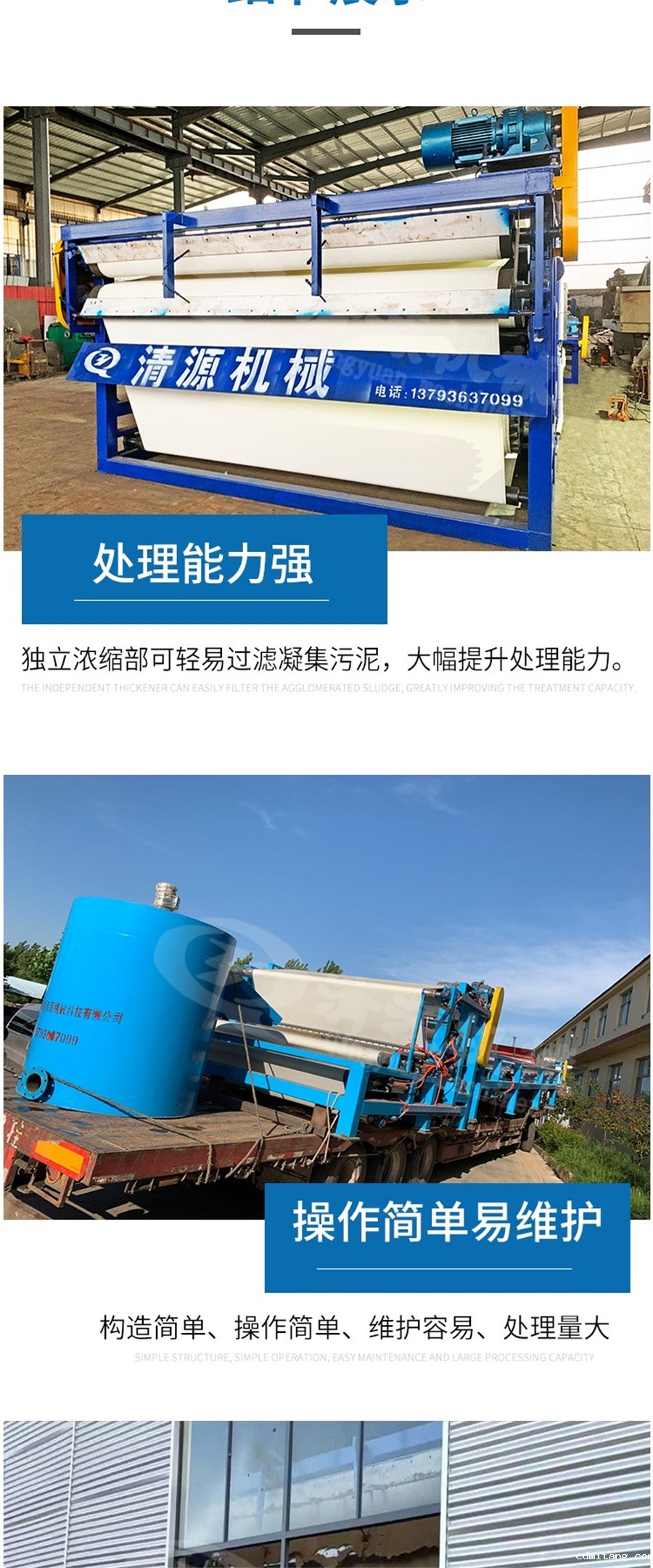 污泥脱水机一种间歇性固液分离设备,是由滤板、滤框排列构成滤室,在输料泵的压力作用下,将料液送进各滤室,通过过滤介质,将固体和液体分离。广泛用于化工、染料、石油、陶瓷、制药、制糖、食品、淀粉、饴糖、油漆、冶金及各行业的污水处理等。它具有分离效果好、适用范围广、操作简单、投资省等优点,特别是对粘细物料的分离,有着不可比拟的优越性。