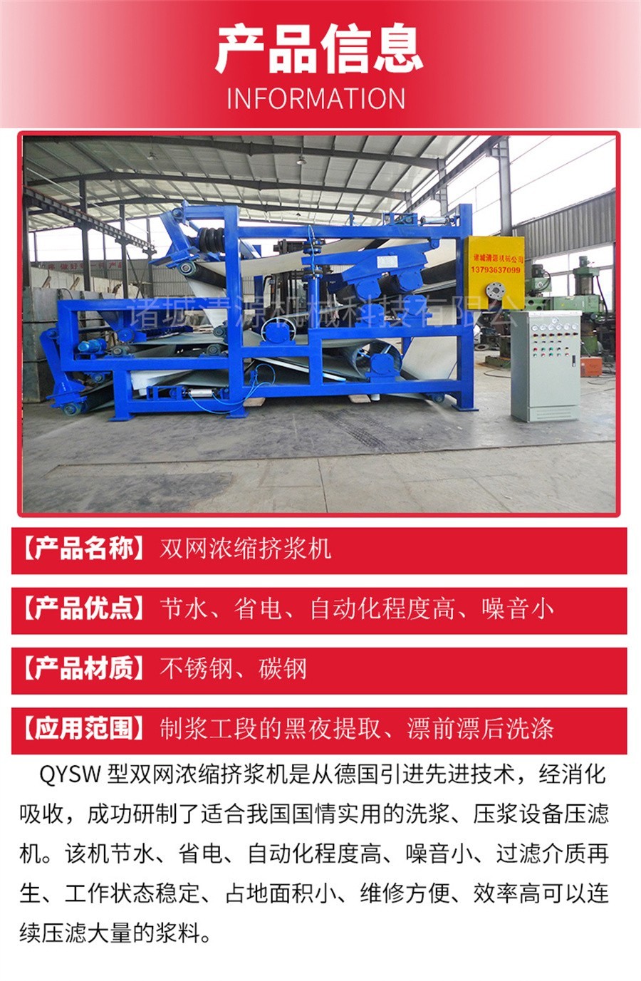 ZWS系列双网浓缩机适用于任何浆料的浓缩,双网浓缩机具有动力消耗极低,出浆浓度高(如果工艺需要,可达40%以上)且稳定,对进浆浓度的适用范围广(ZWS1型进浆浓度6-15%,ZWSII型进浆浓度0.5-5%)的优点。