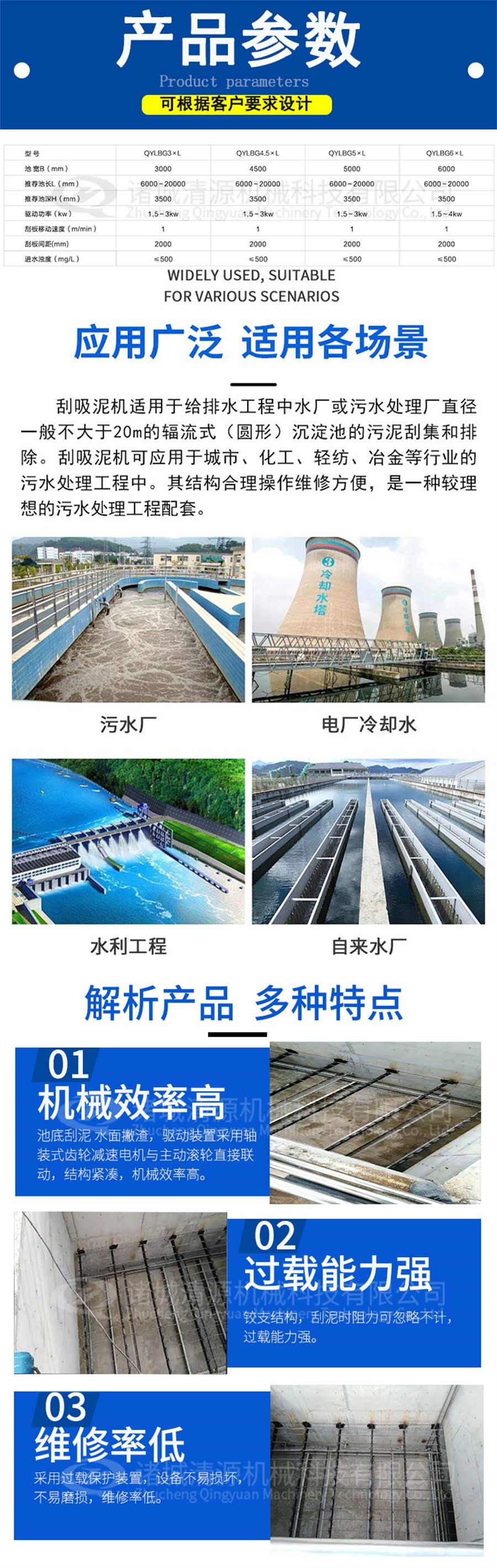 一、使用场所:链板式刮渣机主要用于石油化工污水处理场所的浮选地、隔油池中污油(渣)回收。