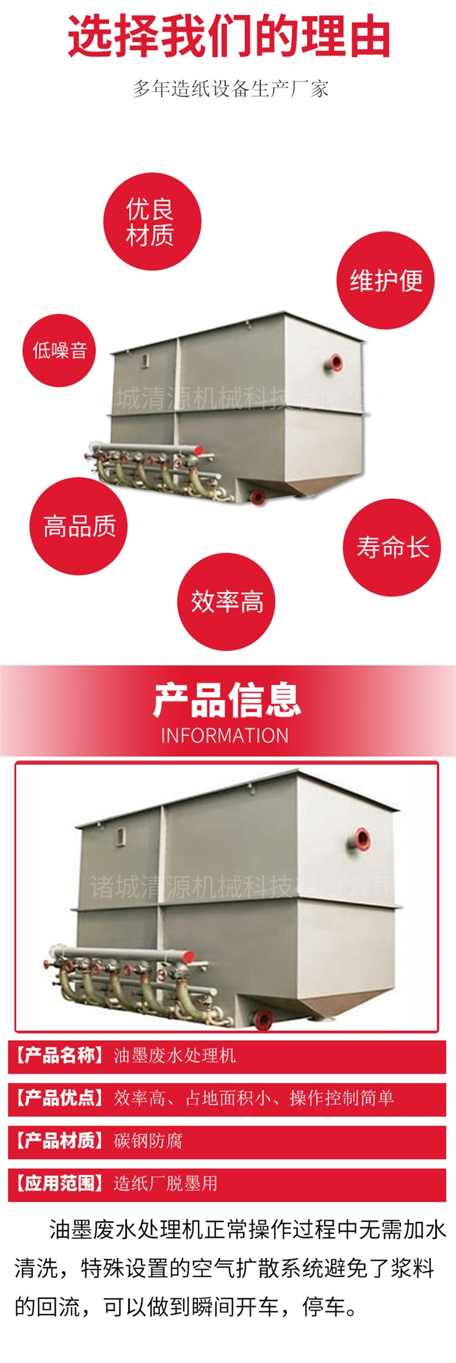 油墨废水处理机用途:该设备在浮选ONP/OMG或MOW等废纸浆时其脱墨效率高达98%以上,甚至不加化学药品也能达到这样的脱墨效果。这种浮选机空气有多层多段布置,浆与空气的混合通过设置在浮选区的特殊空气扩散器进行。纸浆经过多层多段空气----浆混合段的处理、浮选区内装有反应区以控制空气泡的上移赫尔纸浆的上下移动,从而能达到极限浮选的效果。这种浮选形式及方式对脱墨至关重要,可以除去其他形式浮选槽难以除去的激光印刷油墨和紫外光固的油墨。